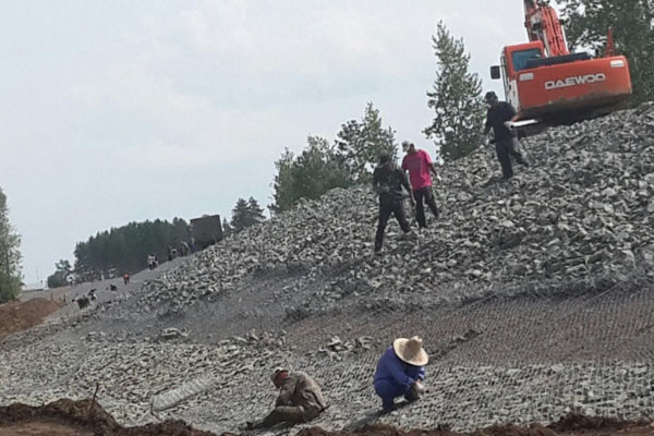 護坡鉛絲籠具有持久的抗腐性能,可以用于山地、河岸、濕地邊界和海岸線等地質構造中,可以持久護坡,為植物健康生長提供了穩定的生存環境。生態石籠護坡網中已裝入植物,最終材料遞降分解,成為根部系統內聚強度。裝置的柔韌性是保護河床和護坡的基本因素