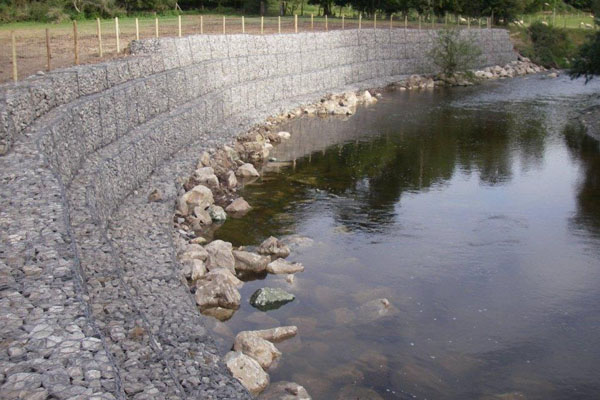 河道石籠網主要用于引導河流水,河流一般會順著固有的河槽流動,河道可能有自然形成的彎曲的河道,如果發生洪水,水量巨大,水流湍急,水流會在慣性下,趨于直向流動,會猛烈地沖擊原來的河槽和堤壩,有可能使河流改道,那樣將造成巨大的災難。為了減輕湍急的水流沖刷河堤,在河堤的內側或者河槽的邊緣,鋪石籠網箱或者石籠網墊,洶涌的河水直接沖擊石籠網箱或者石籠網墊,這樣保護河堤或者河槽。