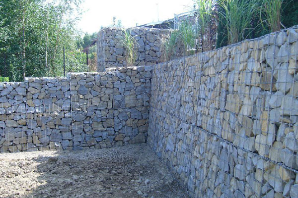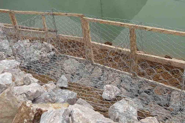 護坡石籠網由高抗腐蝕、高強度、具有延展性的低碳鋼絲或者包覆PVC的以上鋼絲使用機械編織而成,使用該網制作而成的箱型結構就是石籠。